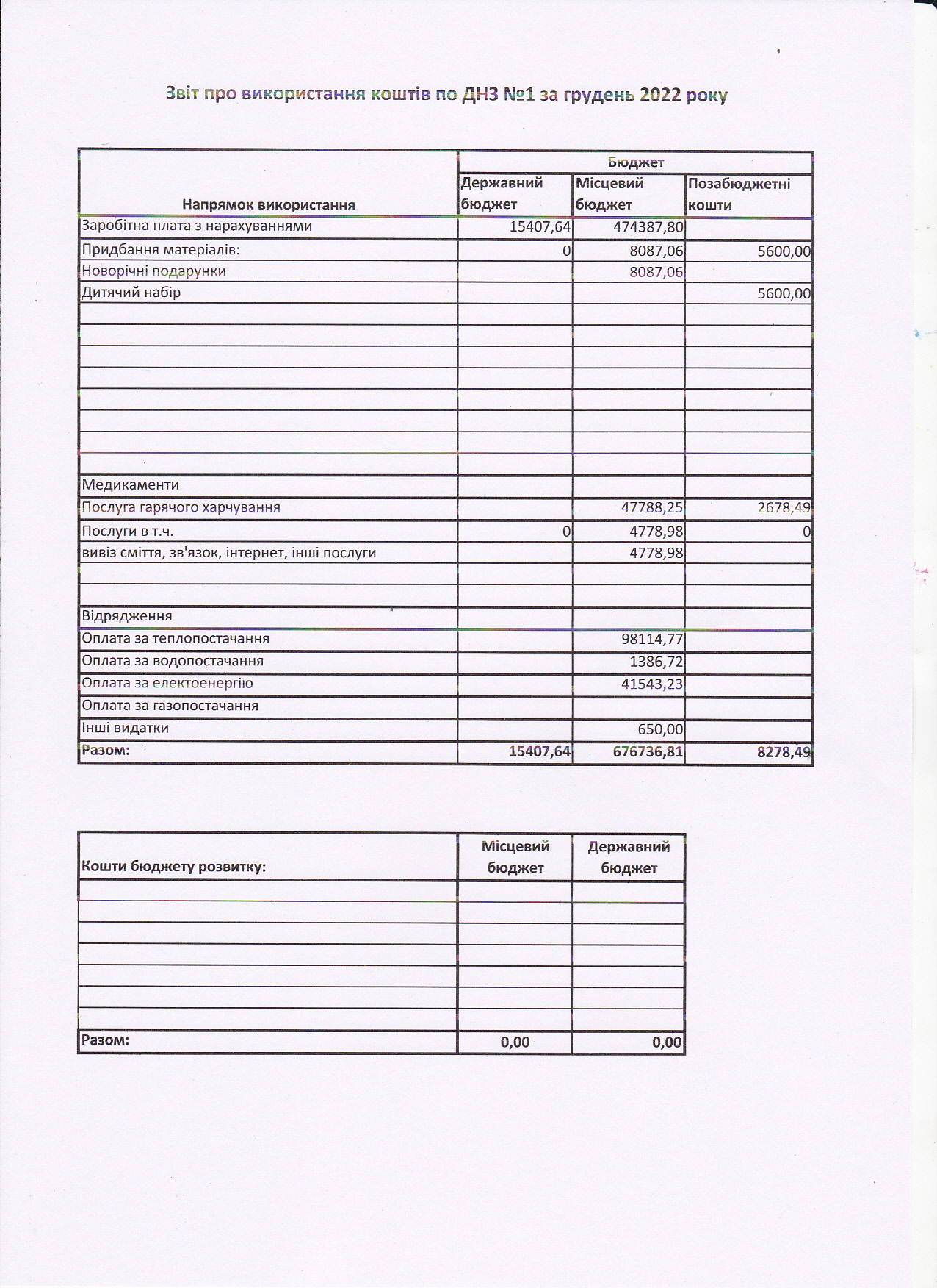 • Річний звіт про діяльність закладу