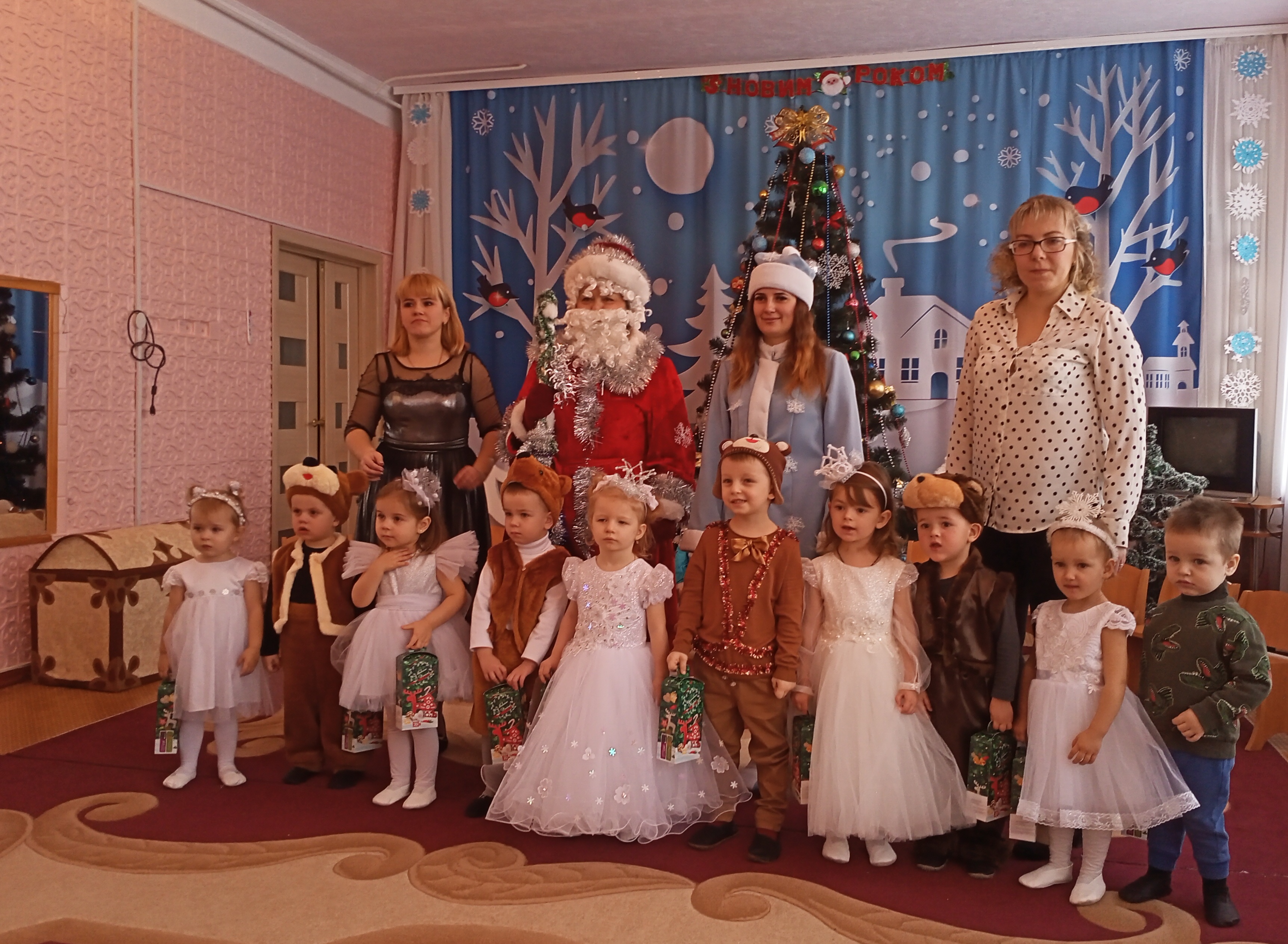 Ось нарешті і дочекалися діти садочка Новорічних свят. І першими Дідуся Мороза та Снігуроньку зустрічали діти групи раннього віку «Веселка». Стільки ж пригод на них чекало: Ялиночку лікували, Снігуроньку звеселяли і Дідуся розважали. Все вдалося малюкам, тож отримали довгождані подарунки.